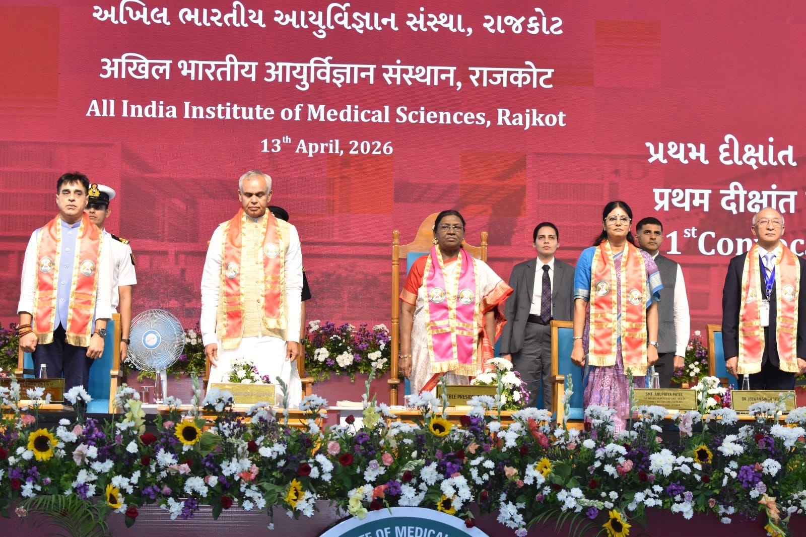 રાજકોટ તા. ૧૩ એપ્રિલ - ભારતના માનનીય રાષ્ટ્રપતિ શ્રીમતી દ્રૌપદી મુર્મુજી આજે રાજકોટ એઈમ્સ (AIIMS)ના પ્રથમ પદવીદાન સમારોહમાં અધ્યક્ષ તરીકે ઉપસ્થિત રહ્યાં હતાં.